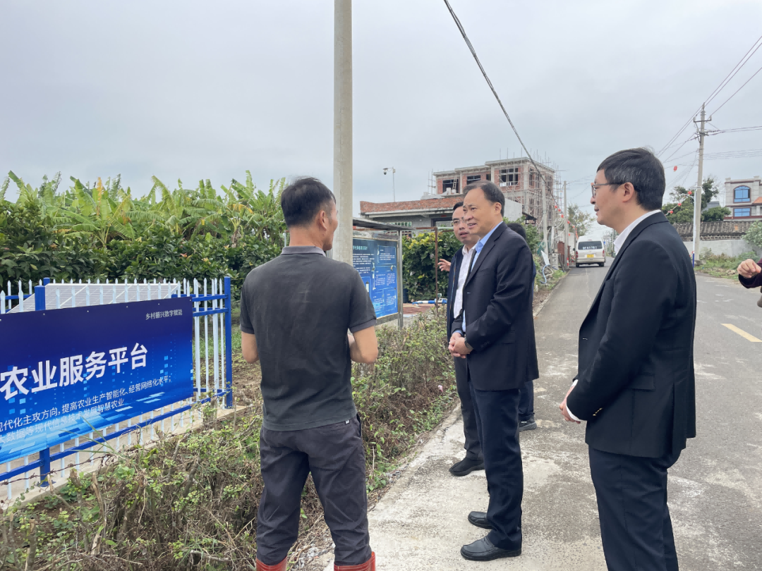 调研组先后实地考察了中国电子援建的耕读山房数字农文旅融合平台、临高金粮储备粮数字化种收平台、“龙洲一号”家庭农场莲雾数字化种植项目、西南大学临高实验中学“小平科技创新实验室”等项目。
